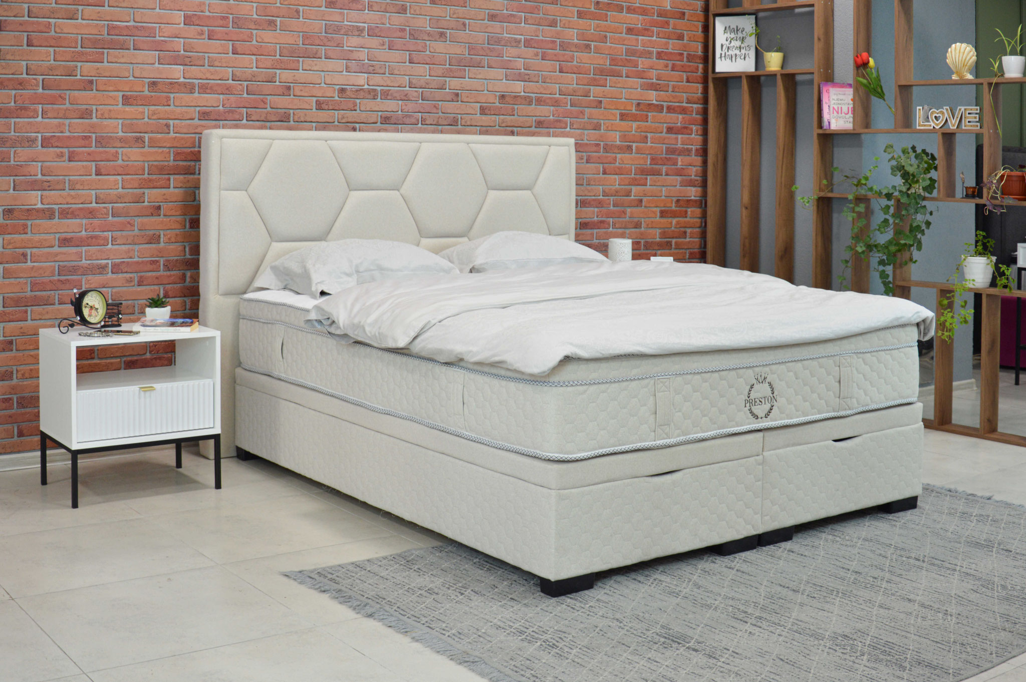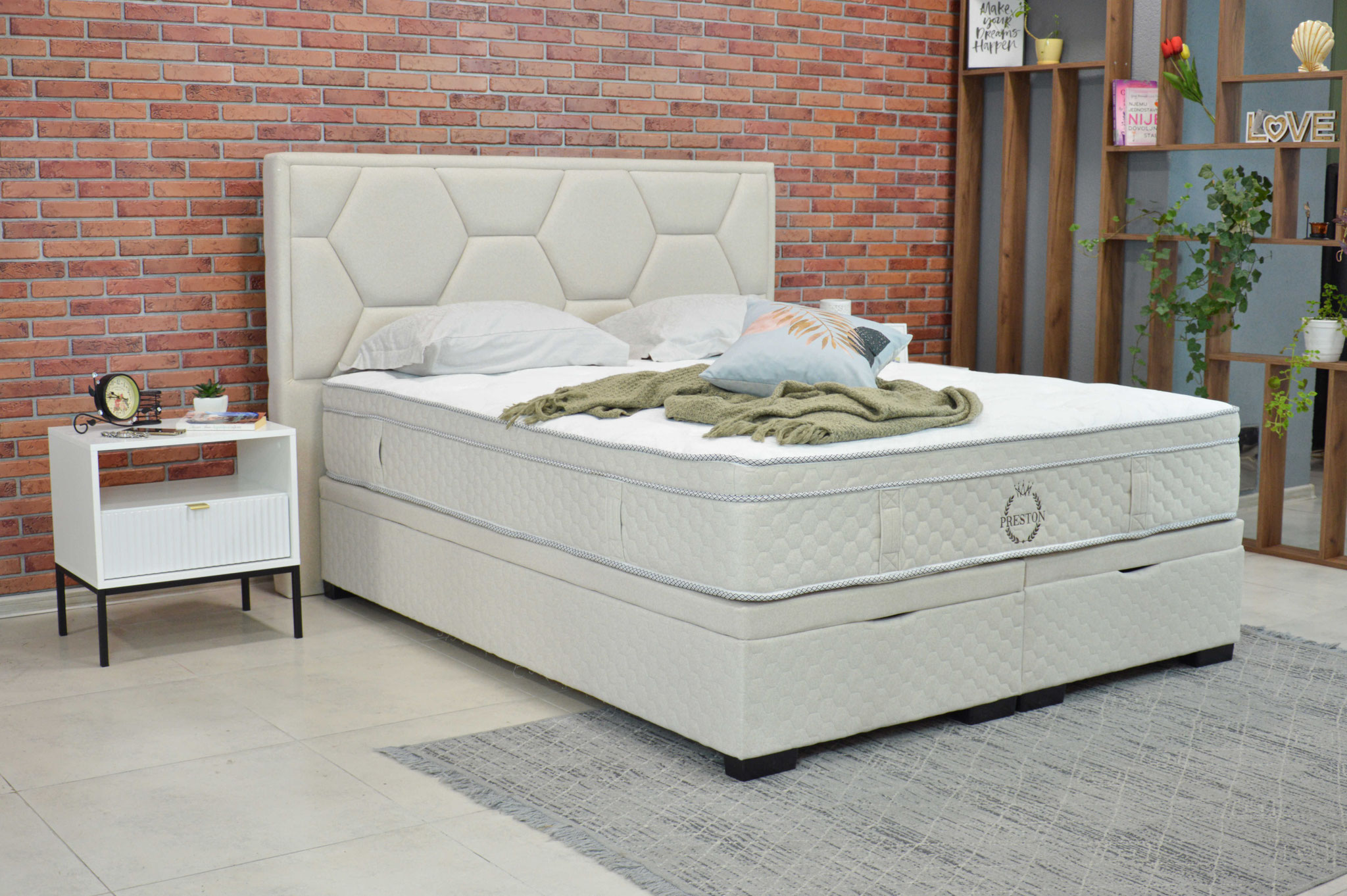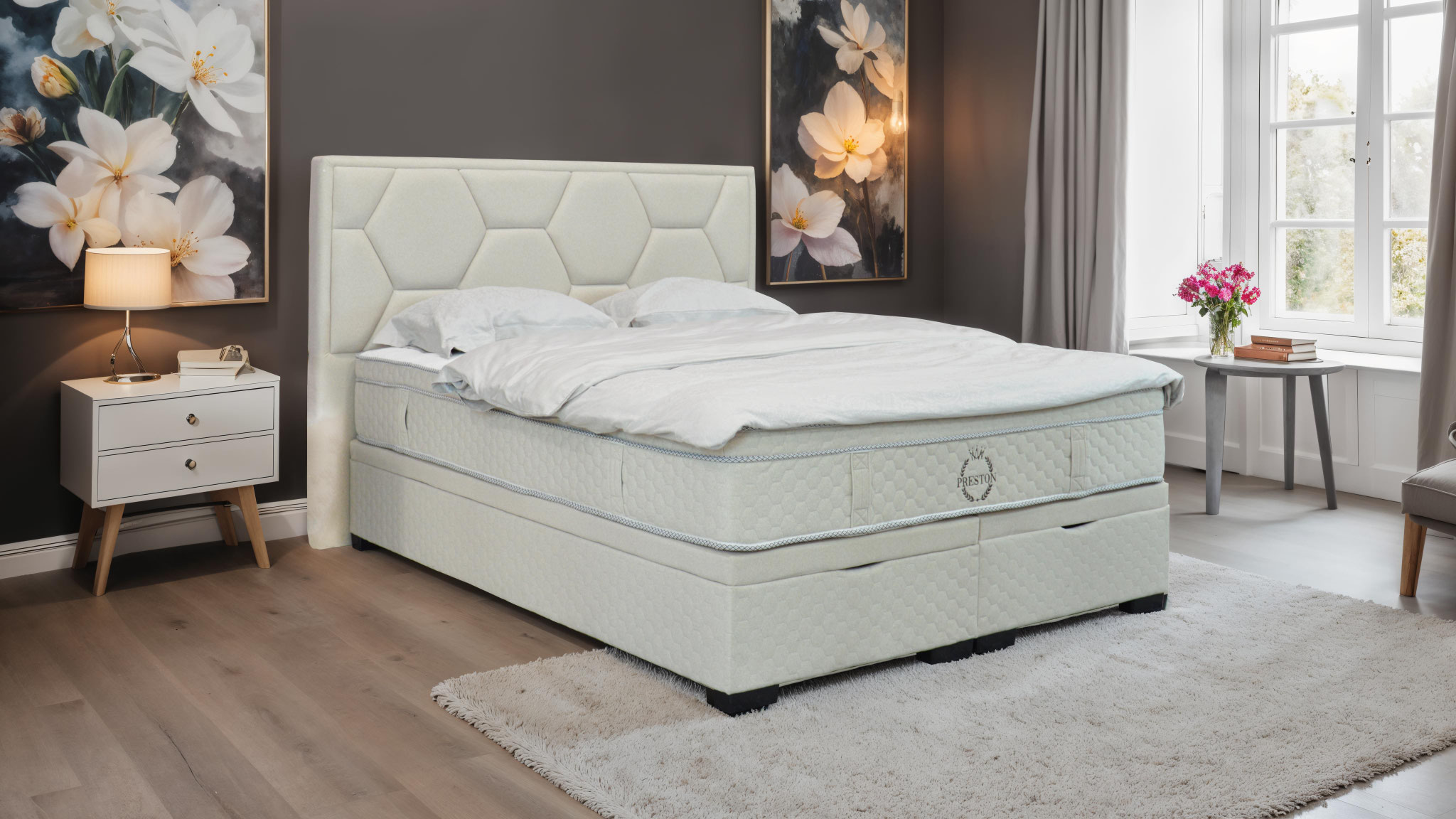 Das Boxspringbett Marbella ist eine Neuauflage der Preston Collection-Linie exklusiver Betten und Matratzen. Der Bettunterbau besteht aus einem StrongCore-Taschenkern, der als Unterlage dient, und praktischen großen Schubladen zur Aufbewahrung von Dingen.