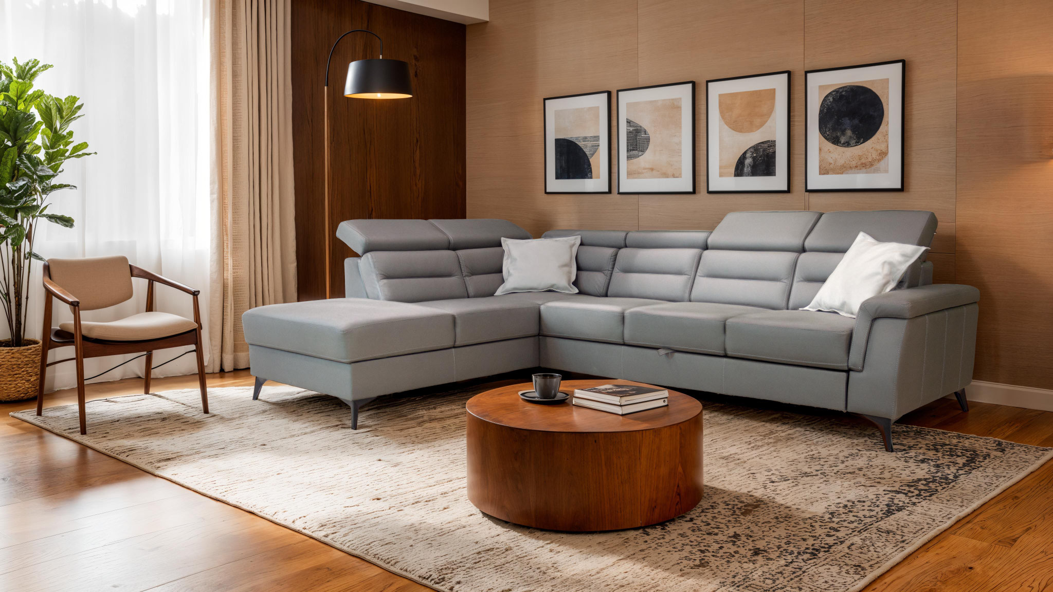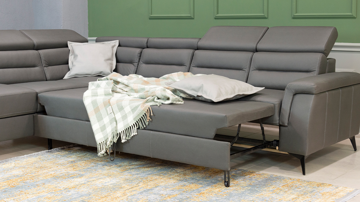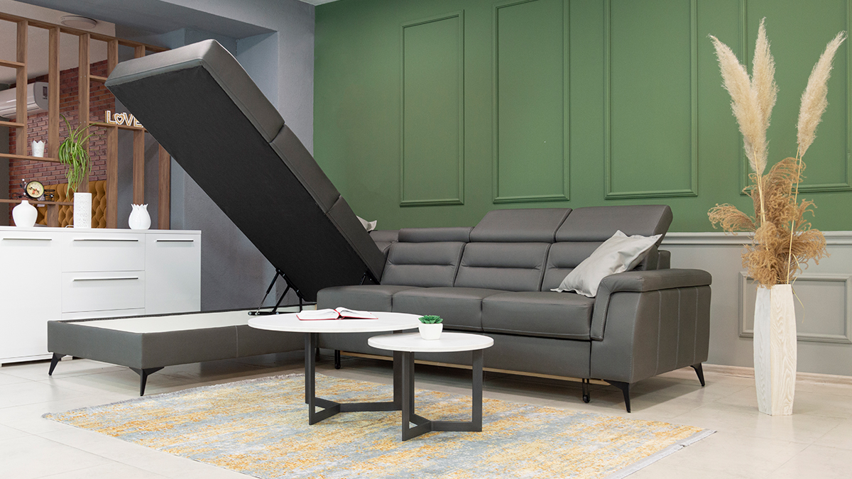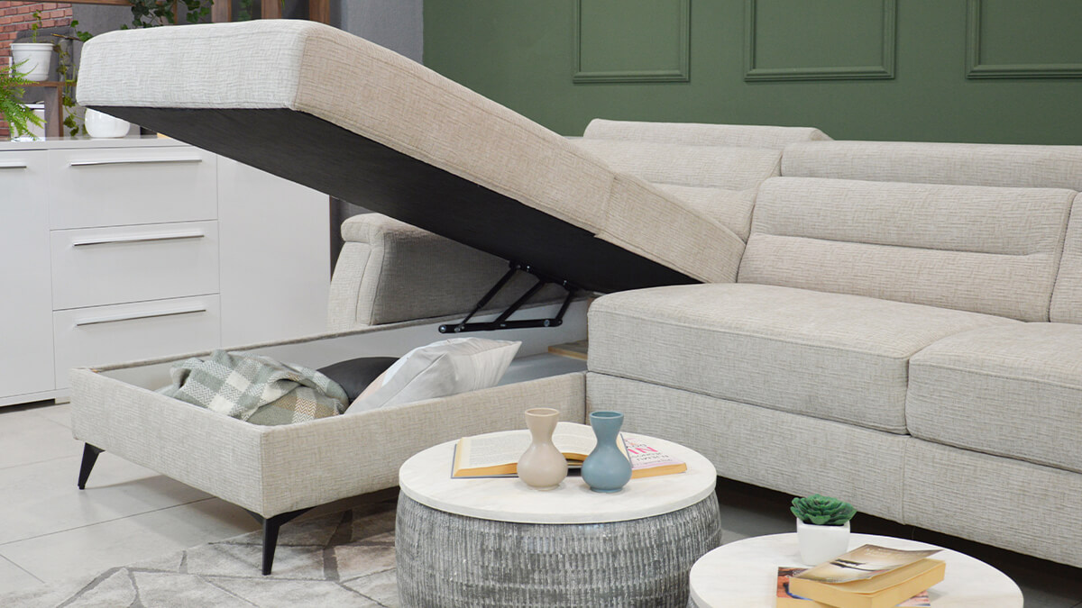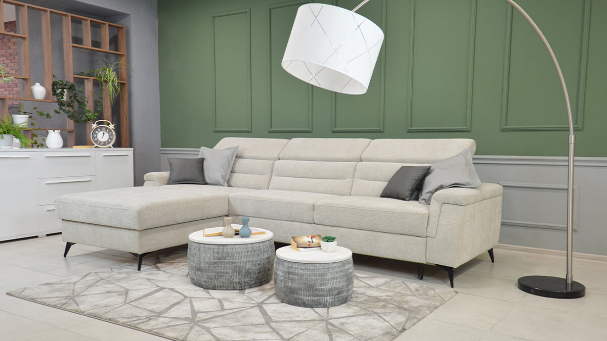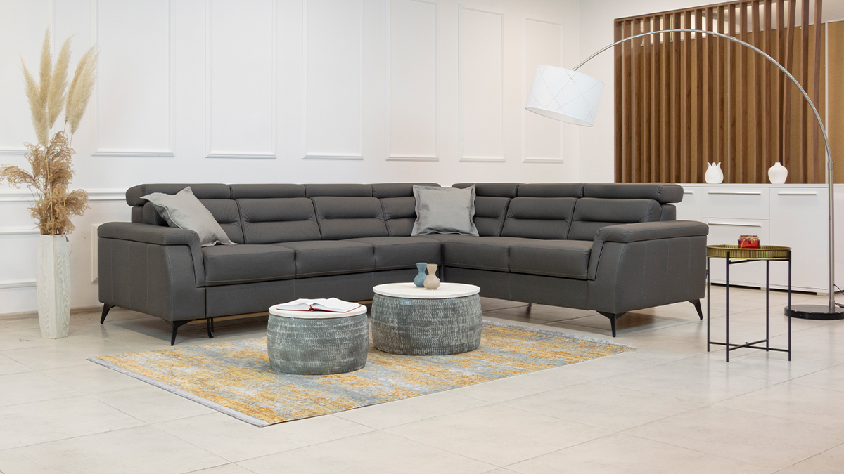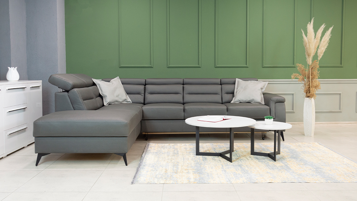 Zu unseren Polstermöbeln gehören dekorative Kissen als kostenloses Zubehör, die die Ästhetik des Raumes noch weiter bereichern. Darüber hinaus ist dieses Set mit einem Zustellbett ausgestattet, was Ihnen Flexibilität und die Möglichkeit gibt, es an Ihre Bedürfnisse anzupassen. Auch ein modularer Aufbau ist möglich, das heißt, Sie können die Anordnung der Teile des Sets ganz nach Ihren Wünschen und Platzverhältnissen anpassen.