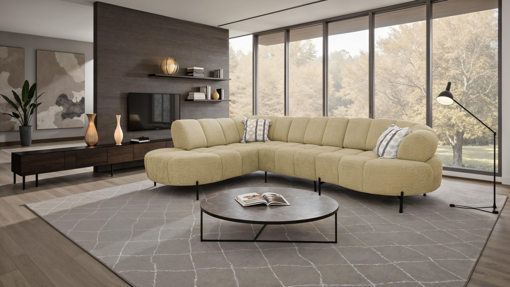 Calia ist mehr als nur ein Ecksofa – es vereint modernes Design, Komfort und Anpassungsfähigkeit. Hergestellt aus hochwertigem HR-Schaum und mit Val-Federn ausgestattet, bietet es außergewöhnlichen ergonomischen Halt und lang anhaltenden Komfort.
